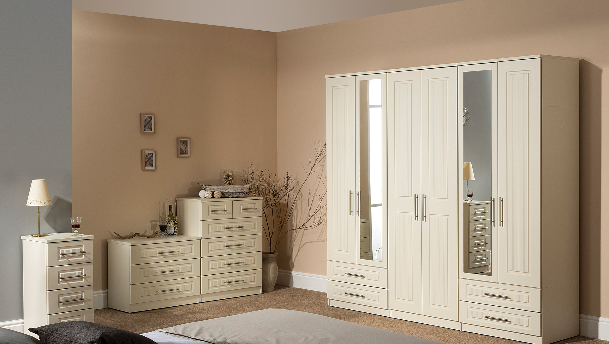 The Newport Range takes its inspiration from a long tradition of beveled furniture. Available in both White and Mussel Cream this distinctive design matches a delicate vertical bevel with a horizontal bevel inset. Newport Mussel has a soft touch finish.