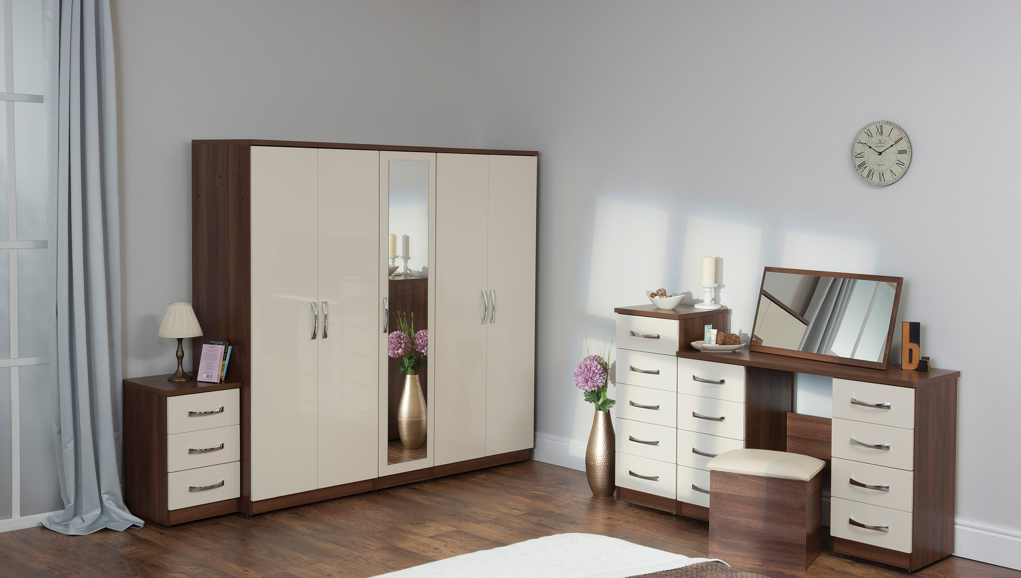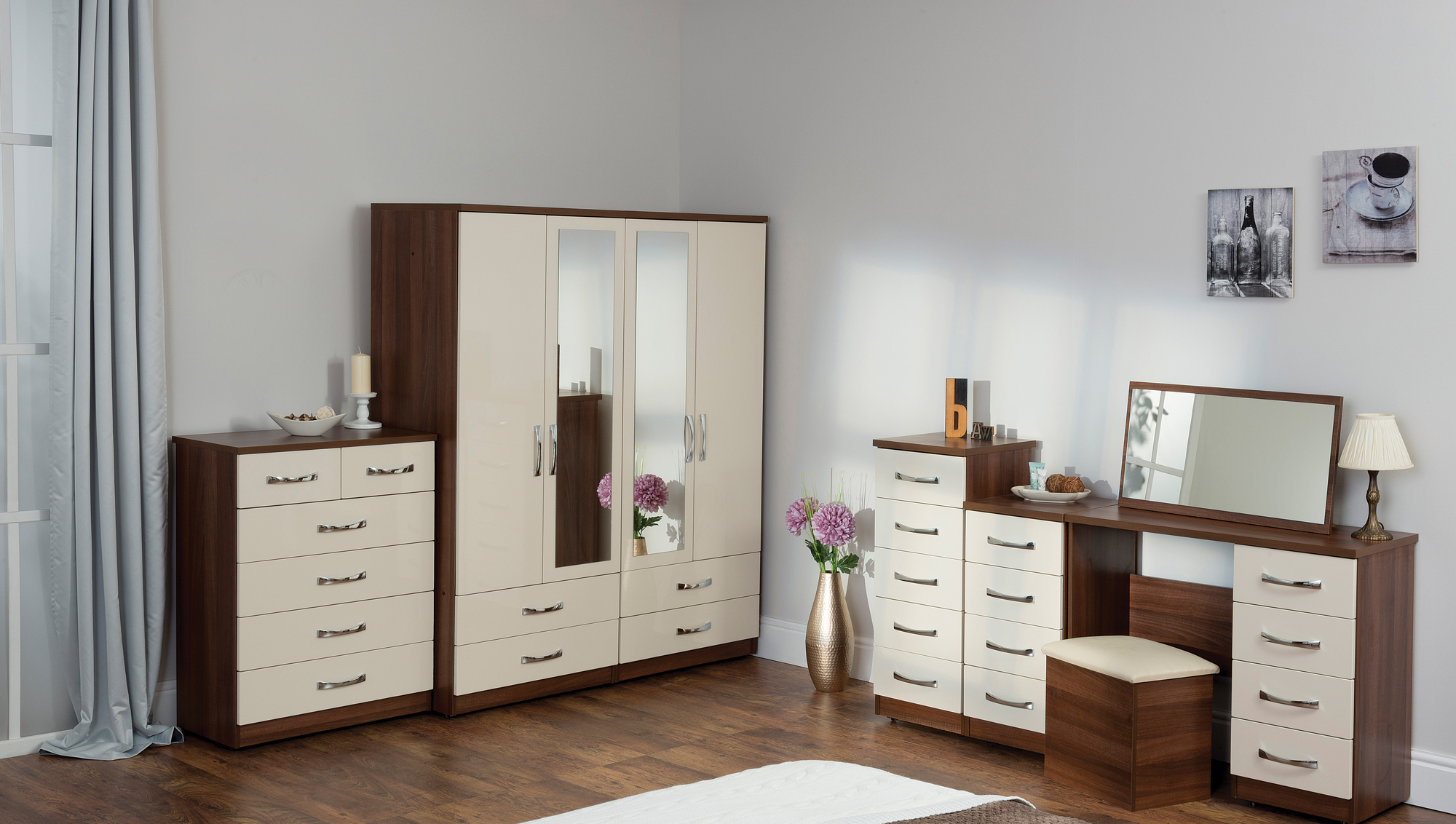Careful attention has been to the build quality, extra thick tops are supplied as well as superior fittings, runners and handles. Added to this Chocolate and gloss cream comes with soft feel material finish to all drawers as standard.