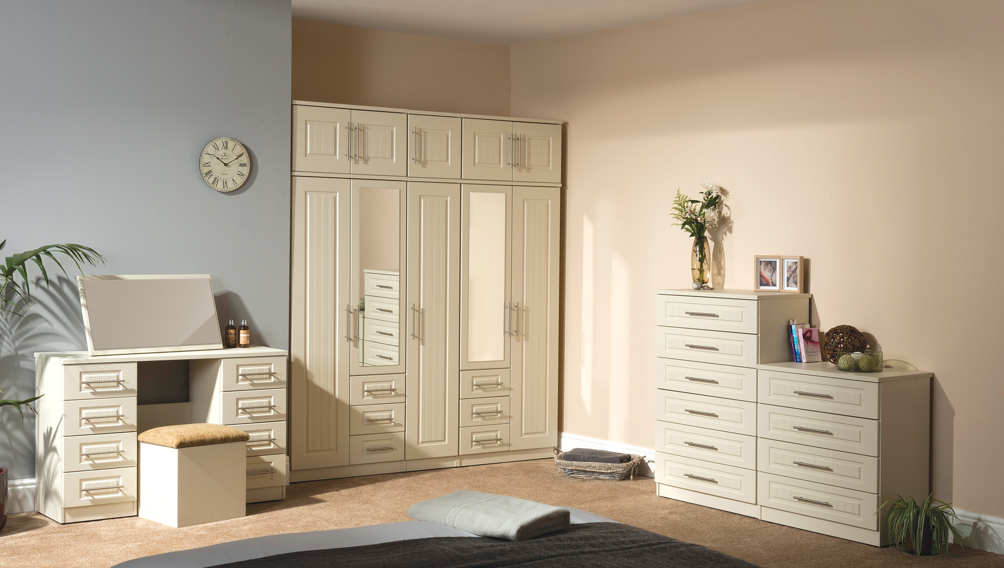 The Newport Range takes its inspiration from a long tradition of beveled furniture. Available in both White and Mussel Cream this distinctive design matches a delicate vertical bevel with a horizontal bevel inset. Newport Mussel has a soft touch finish.